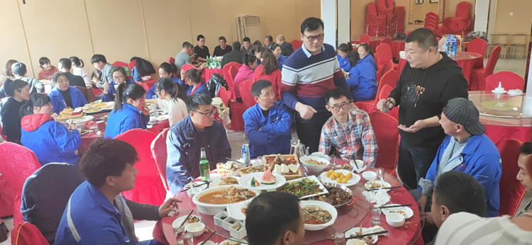 節(jié)后復工后,鑫友組織了員工聚餐。考慮到近期疫情防控的需要,聚餐按部門分批進行。規(guī)模雖然小了,但現(xiàn)場的氛圍卻依舊熱烈。員工們也都感受到了王總和部門領導們的深深關懷。席間王總肯定了大家去年的辛勤付出,高度贊揚了各部門所取得的成績,同時也對今年提出了新的期望。一番舉杯暢飲之后,大家斗志昂揚,都要2021年大干一場。