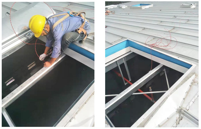 寧波圓拱型采光排煙天窗項目施工安裝