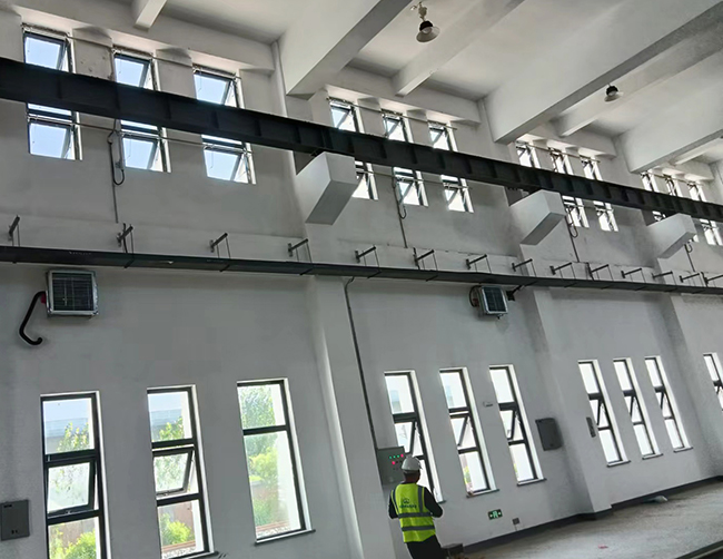 我公司承接蕪湖熙寧建設工程有限公司天津寶坻軌道車庫、綜合樓、宿舍樓的排煙窗工程已經于昨日完工并經甲方初步調試通過,選用的是曲臂式手動和電動兩種開啟裝置。電動開窗機是一種新型自動開/關窗戶的設備,可實現窗戶開啟/關閉的自動化控制。