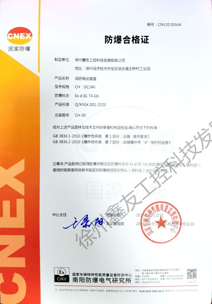 氣體防爆證書2020.8.12-2025.8.11