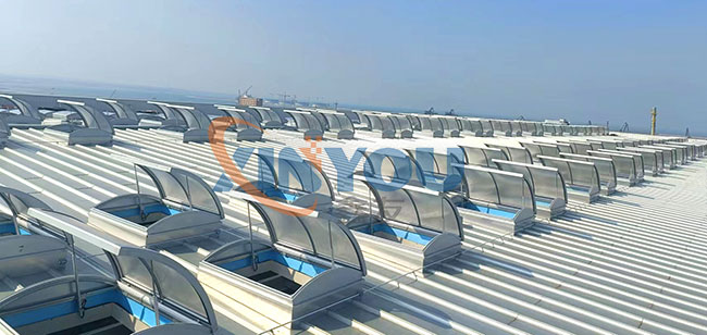 圓拱形的設計,外觀優(yōu)美、通風排煙兼顧自然采光,可實現(xiàn)消防聯(lián)動控制,開啟角度一般為30度到45度***開啟角度為90°。 夏季有利于排水,冬季不積雪。采用單開或對開形式。天窗啟閉按群組控制,每組天窗數(shù)根據(jù)天窗數(shù)量及控制距離決定。