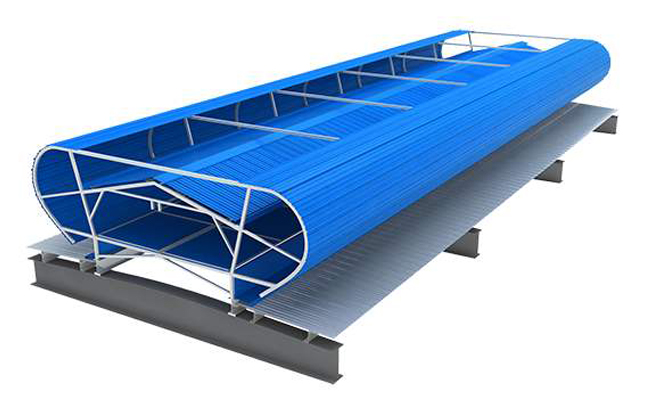 2. 主骨架和屋脊通風天窗基座采用焊接或者螺栓連接,與屋面形成一個整體,具有較好的結構安全性能。
